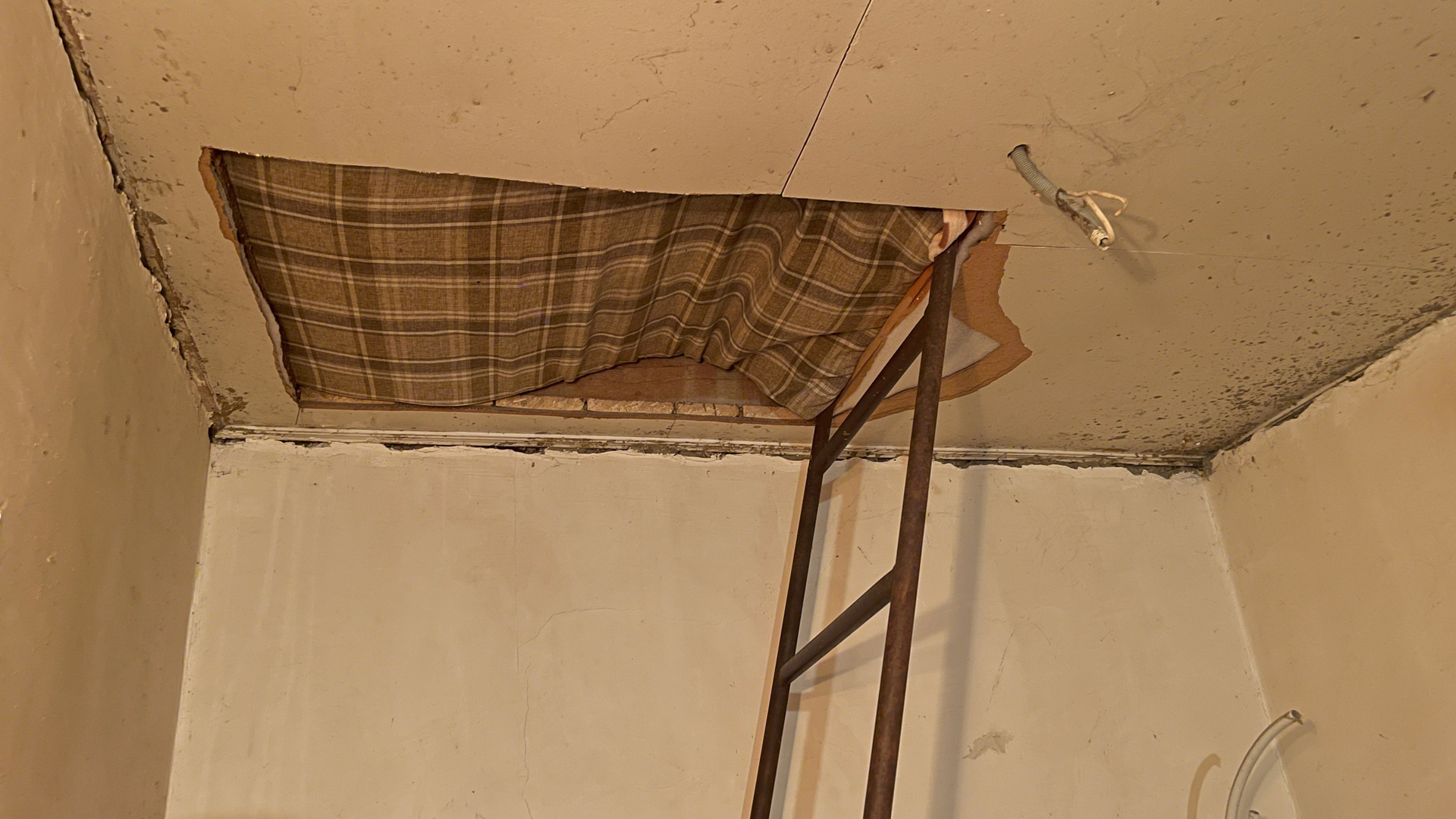 Также уже сделан лаз в полу на первый этаж основного дома, но лестница старая, неудобная поэтому в планах сделать новую, красивую, в лофт-стиле.