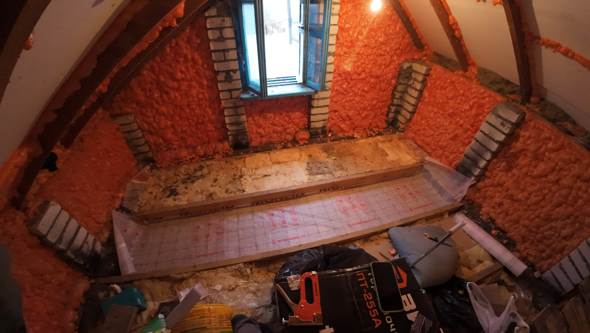 Первое, чем я занялся — это утепление пола и укладка пароизоляции.